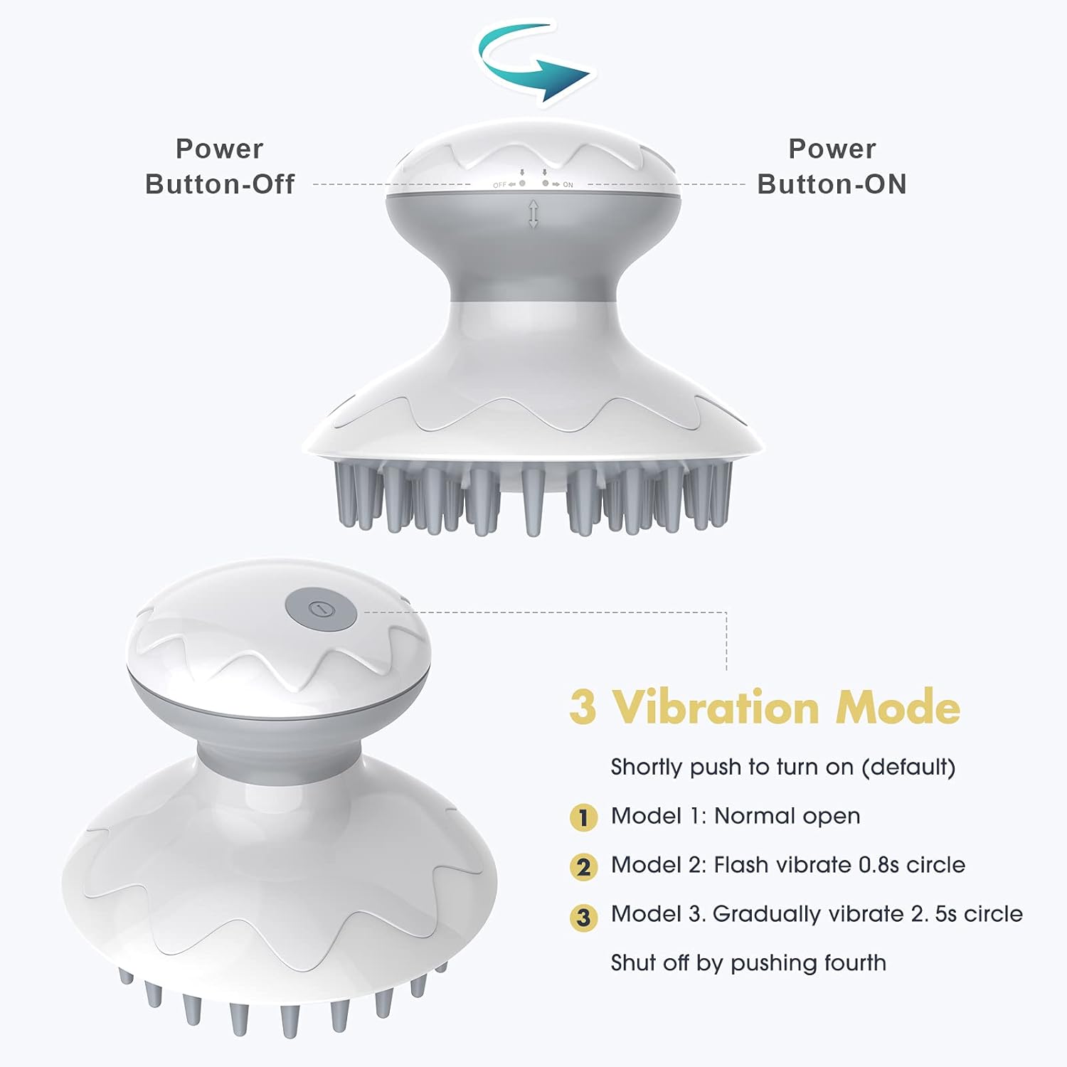 La Modalità 1 offre una vibrazione normale, adatta al massaggio quotidiano e al rilassamento generale. La Modalità 2 utilizza una vibrazione flash con intervalli di 0,8 secondi, ideale per stimolare profondamente la cute. La Modalità 3 presenta vibrazioni graduali con cicli di 2,5 secondi, perfette per un effetto intenso e rigenerante.